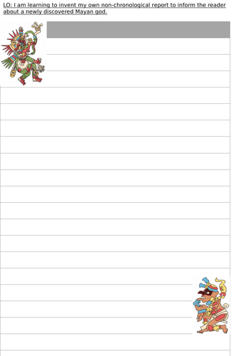 Non chronological report mayans. 5 6 Mayans Autumn 1 The Hero Twins Dan Jolley The Mayans History in Infographics Jon Richards Graphic Novel Non Fiction Horror Myths and Legends Infographics Autumn 2 Pandora Literacy Shed Media Unit Science Fiction Description Instructions Non-Chronological Report Narrative Poetry Extreme Earth Explorers. To write a non-chronological report on aspects of the Mayan civilisation About important places and religious ideas from Ancient Maya To write myths in the style of Ancient Mayan creation myths To create Mayan ceremonial masks To understand and rank the achievements of the Ancient Mayan Civilisation. A non-chronological report is a piece of non-fiction writing which doesnt follow events in order of timeThere are different kinds of non-chronological reports for example formal letters informational leaflets and instructions are all non-chronological reportsA non-chronological report is written about a single topic and has a range of different facts or information about the topic.